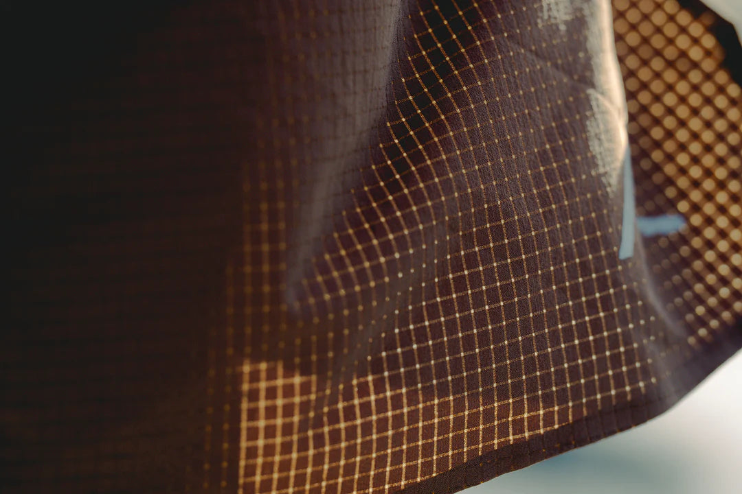 • Matériau extérieur : Toray DotAir, 92 g/m², 40dx40d 85 % nylon, 15 % élasthanne. Le tissu extensible DotAir de Toray est le moyen le plus durable d'ajouter de la respirabilité à un tissu tissé.
