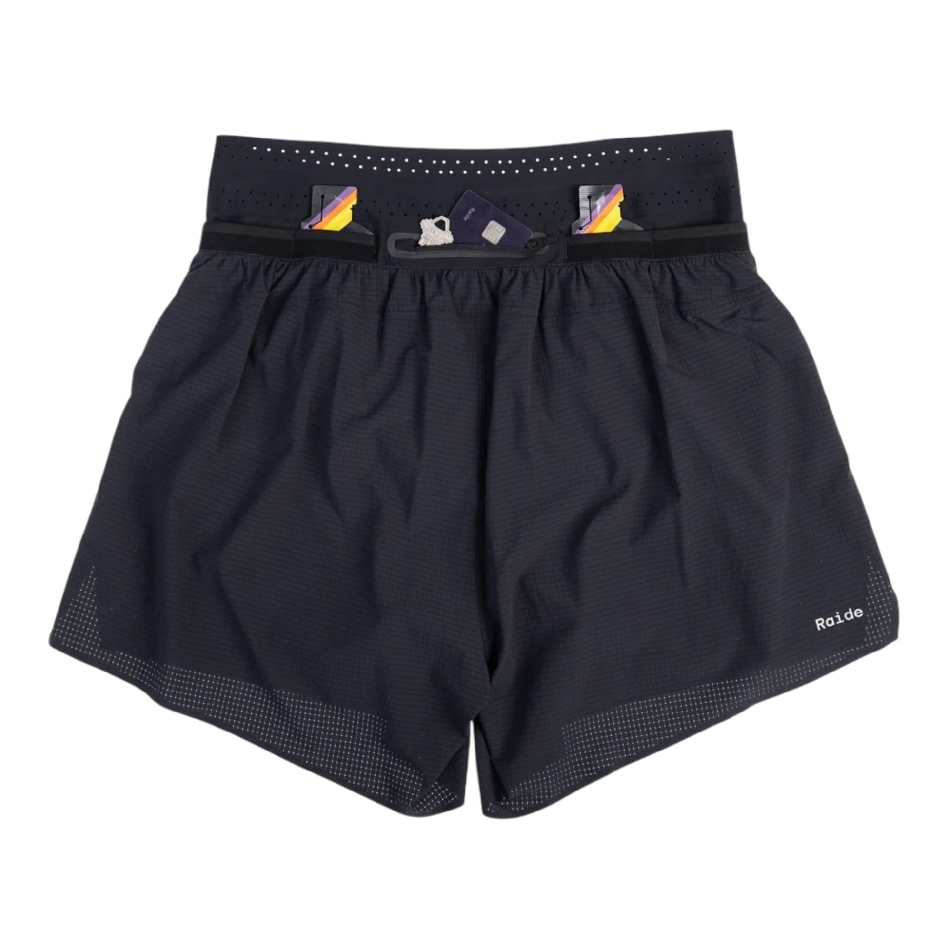 • Conçu pour s'intégrer parfaitement aux ceintures de course Raide : Les poches du short TrailTech sont placées bas sur la ceinture, ce qui permet d'y accéder facilement même lorsque l'on porte une ceinture de course.